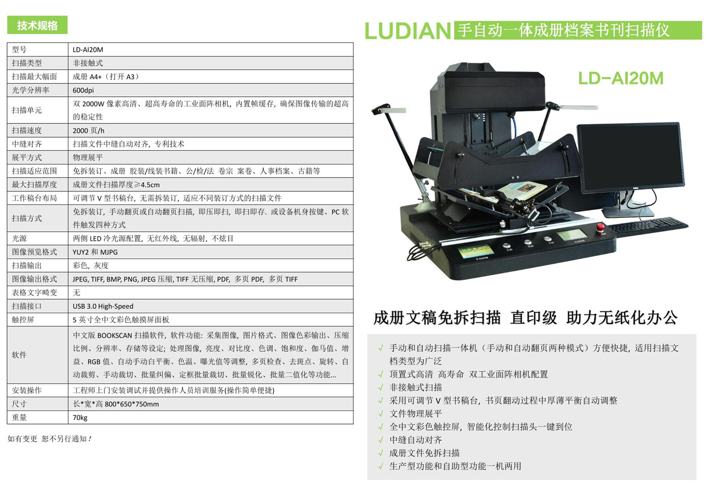 A3幅面 成册免拆 手自动一体成册档案书刊扫描仪