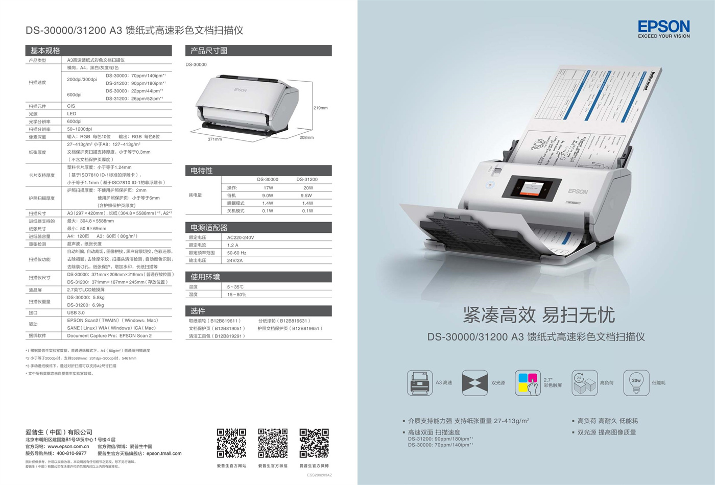 爱普生 A3馈纸式扫描仪 DS-32000-31100
